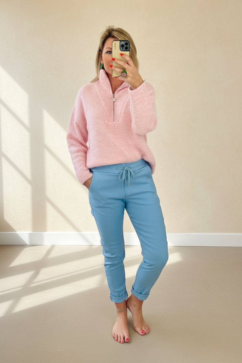 Designed in a pull-on style with a drawstring waist, they give you that easy, flattering fit without any of the faff. The fabric has a smooth matt finish and a slightly slimmer fit than other magic trousers in our range, making them feel that bit more polished.